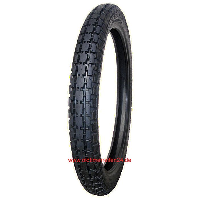 A range of tyres designed by Vintage Tyres to emulate the popular block patterns of the early crossply motorcycle tyres. This design makes them perfect for the golden age of pre-war bikes, and the sizes offered reflect this.